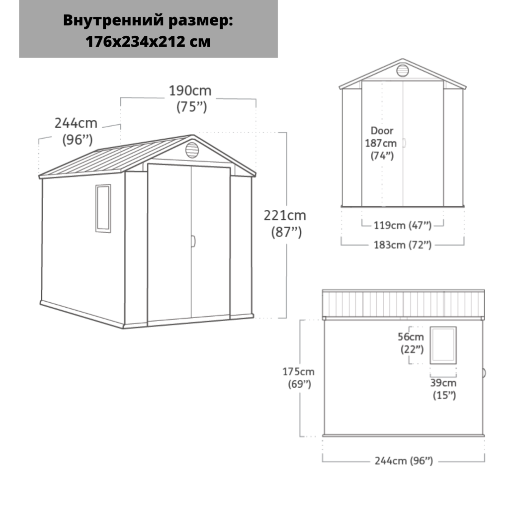 - Быстрая сборка без мусора и грязи. Панели легко собираются благодаря готовым пазам и выступам. За 2-3 часа два человека полностью соберут сарай Darwin 6x8.