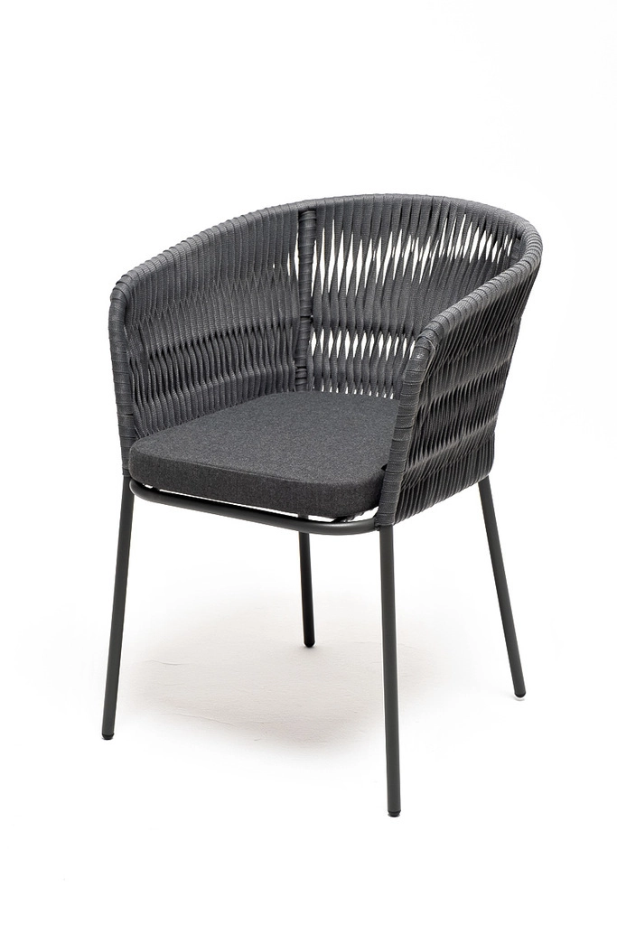 Бордо стул (57х62х80см) плетеный из роупа (колос), каркас алюминий темно-серый (RAL7024) шагрень, роуп серый 15мм, ткань темно-серая