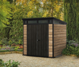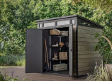 Сарай - Pent 7х7 современен во всех отношениях. С наклонной крышей над оконной группой, он может похвастаться элегантным и привлекающим внимание дизайном. Внутри может быть расположено все: от рабочей зоны для обустройства дома до спортивного инвентаря на оборудования. PENT 7X7 изготовлен по уникальной технологии DECOCOAT, которая не только устойчива к погодным условиям, но и дополняет внешний вид и соответствует трендам дизайна открытого пространства лучше, чем любая другая технология. Технология DECOCOAT «Like wood, but better» (“Как дерево, только лучше») сочетает в себе преимущества смолистых веществ с эстетичной отделкой. Сарай, в высшей степени современный и прочный, полностью устойчив к атмосферным воздействиям и не требует дополнительного технического обслуживания – материал изделия не ржавеет, не гниет и не расслаивается.