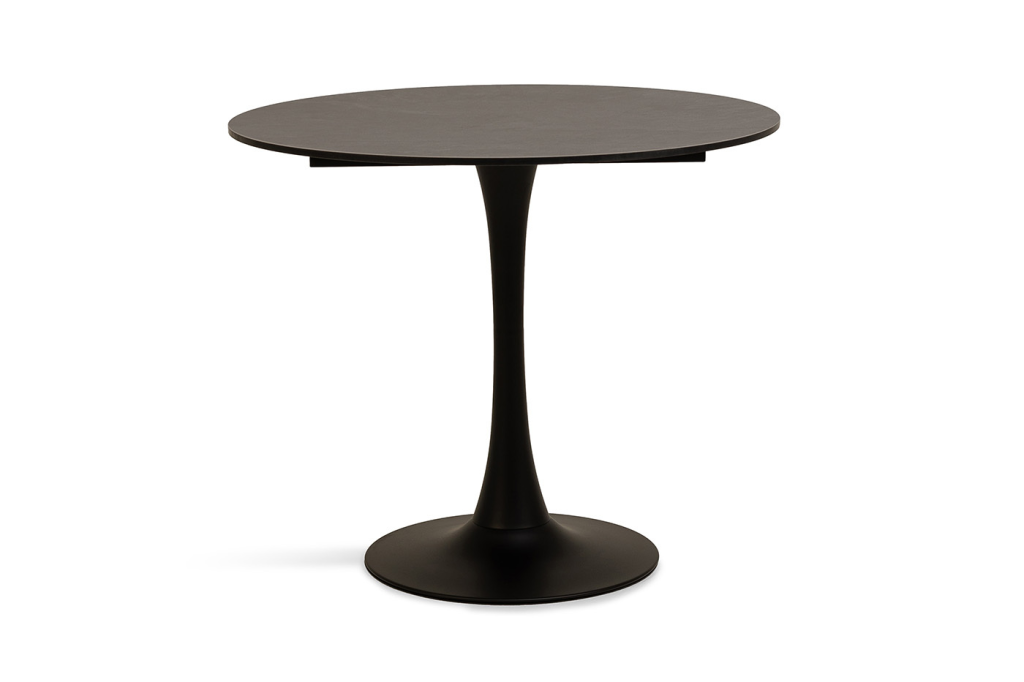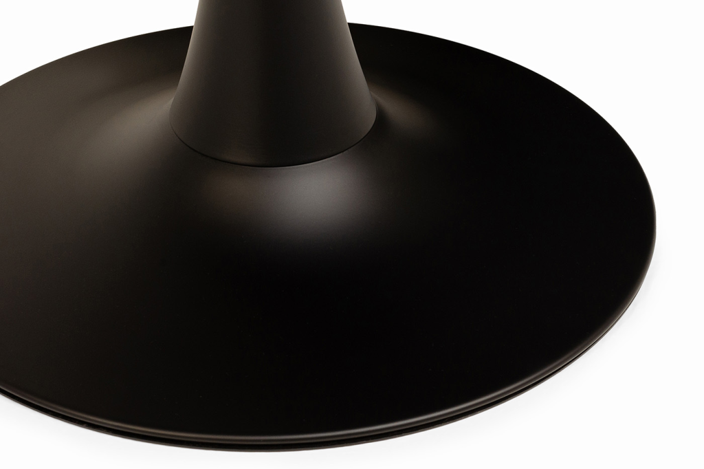 Обеденный стол Тюльпан с изящной плетеной ножкой из прочного металла, окрашенного в черный цвет.