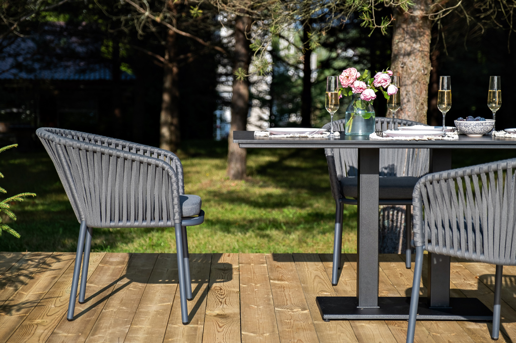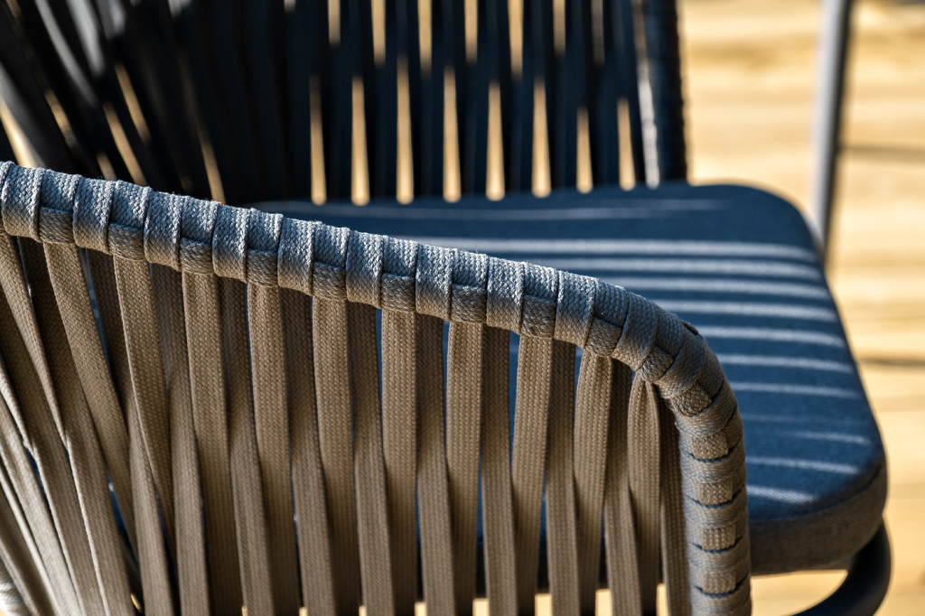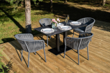 - 4 плетеных стула Бордо из плоского роупа, размером - 570×620×775 мм, цвет роупа - серый, каркас - темно-серый (RAL7024).