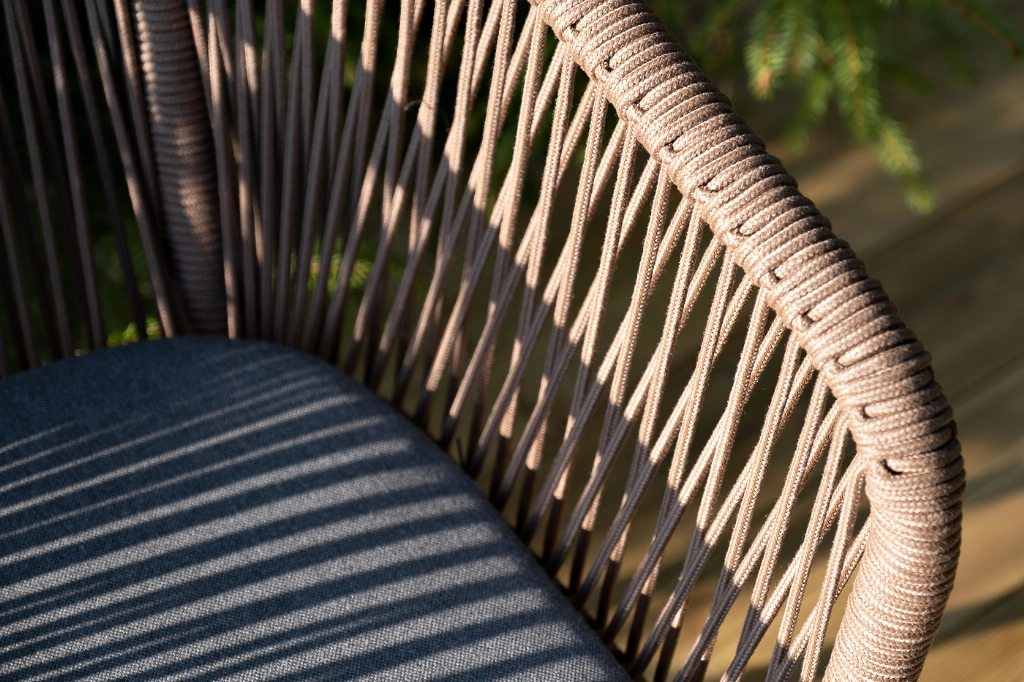 - 4 плетеных стула Марсель из круглого роупа, размером - 570х620х775 мм, цвет каркас и роупа - коричневый.