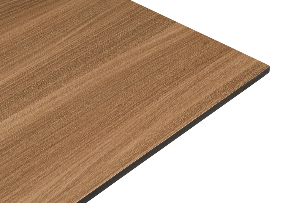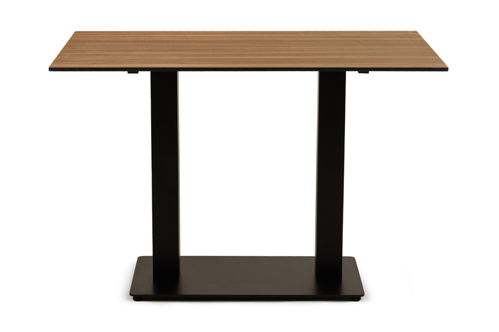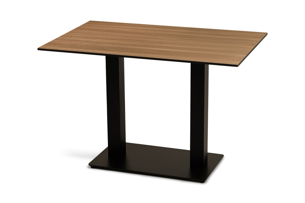 Двойное подстолье изготовлено из стали, столешница - из высококачественного монолитного компакт-пластика HPL, толщиной 12 мм, цвет «дуб».