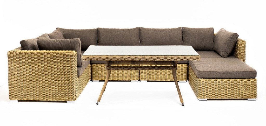Лунго обеденная группа угловая из искусственного ротанга (7 персон), цвет соломенный